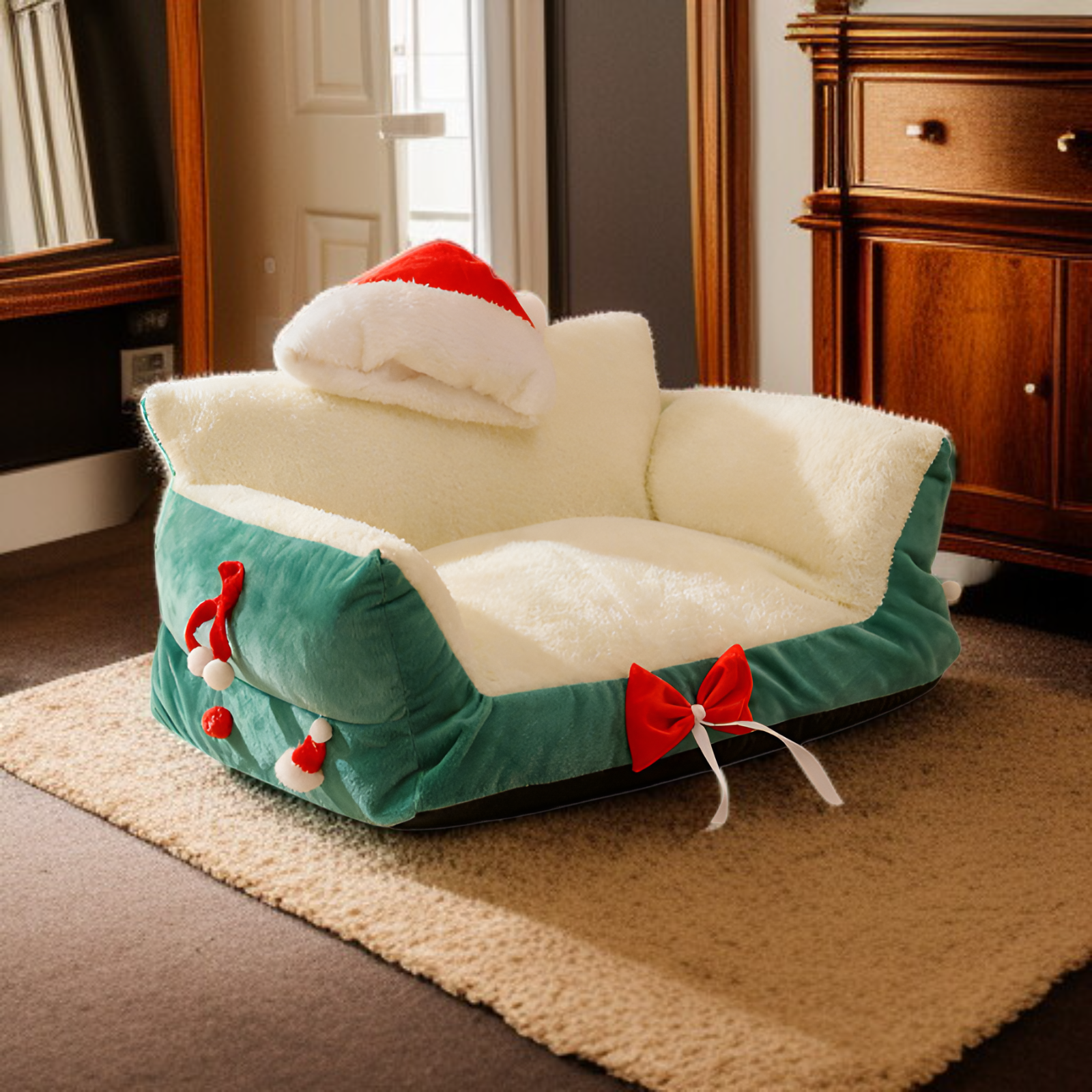 顏色:聖誕沙發窩-M號綠色【50*35*25cm】(適用於8斤內)、聖誕沙發窩-L號綠色【60*40*30cm】(適用於16斤內)、聖誕沙發窩-M號紅色【50*35*25cm】(適用於8斤內)、聖誕沙發窩-L號紅色【60*40*30cm】(適用於16斤內)